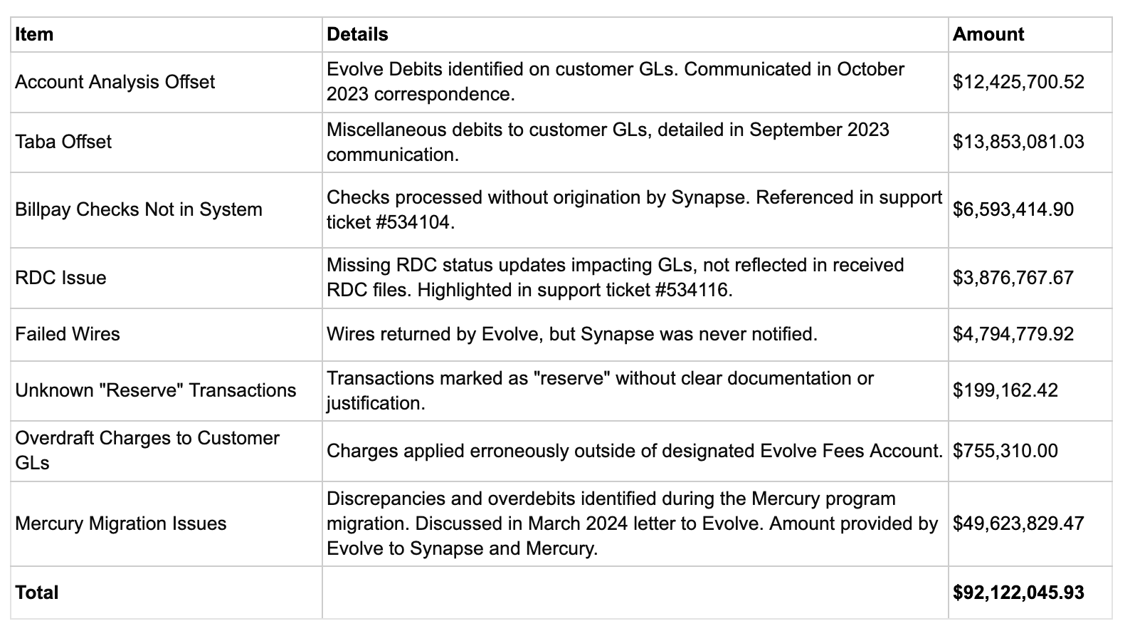 That $92 million amount is consistent with allegations Synapse cofounder and former CEO Sankaet Pathak has made publicly regarding the cause of and total amount of missing depositor funds at Evolve: