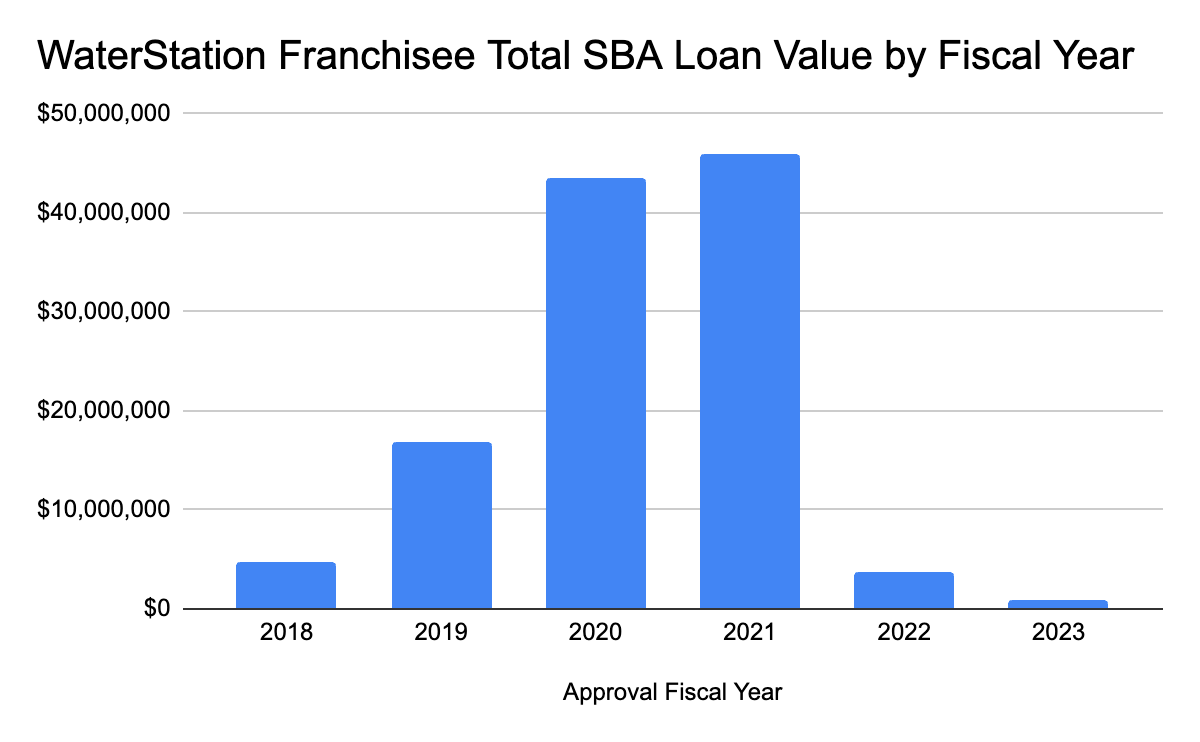 During 2018 and 2019, about one or two WaterStation franchisees per month were approved for an SBA-backed loan, for a total of 41 such loans by the time the severity of the COVID pandemic was coming into focus in March 2020.