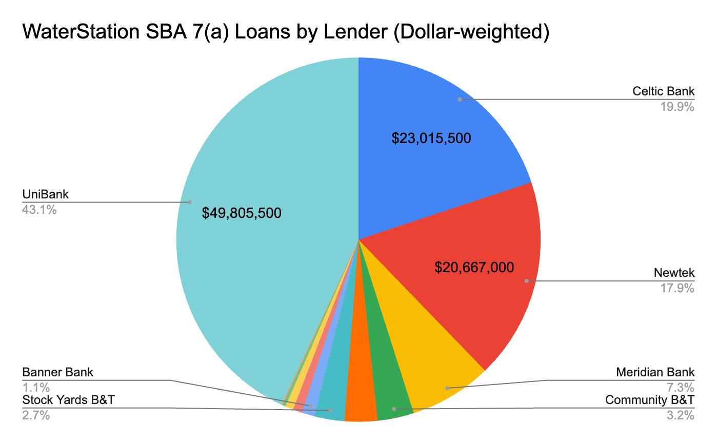 Celtic Bank, with about 20% of the loan volume, and Newtek, with about 18%, were also significant drivers of SBA loans affiliated with WaterStation.