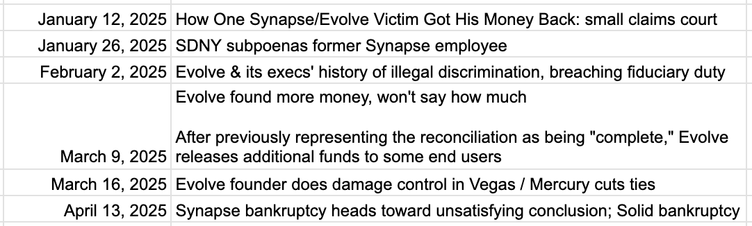 If you enjoy reading this newsletter each Sunday and find value in it, please consider supporting me (and finhealth non-profits!) by signing up for a paid subscription. It wouldn’t be possible to do what I do without the support of readers like you!The Synapse-Evolve Disaster: One Year Later