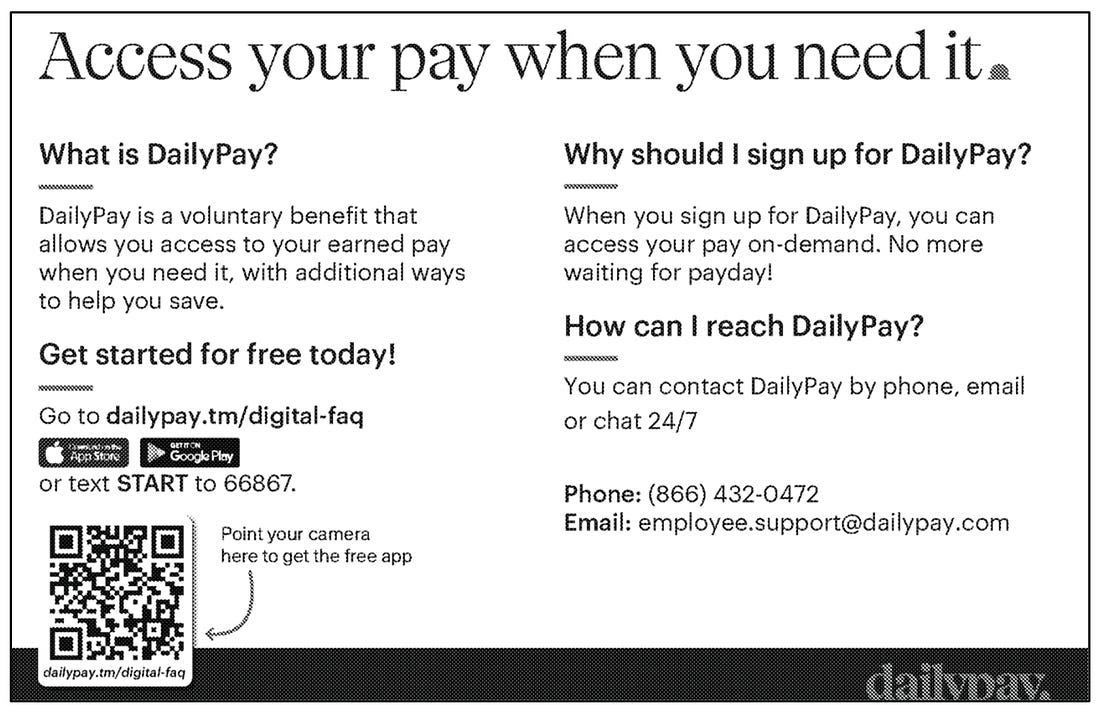 DailyPay, through its employer partners, directed employees to get DailyPay’s “free app” and emphasized that they could “get started for free,” according to the complaint.