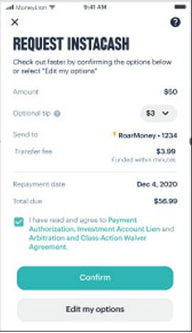 Instacash offers users up to $500, or up to $1,000, if they use the company’s RoarMoney account and have qualifying direct deposits.