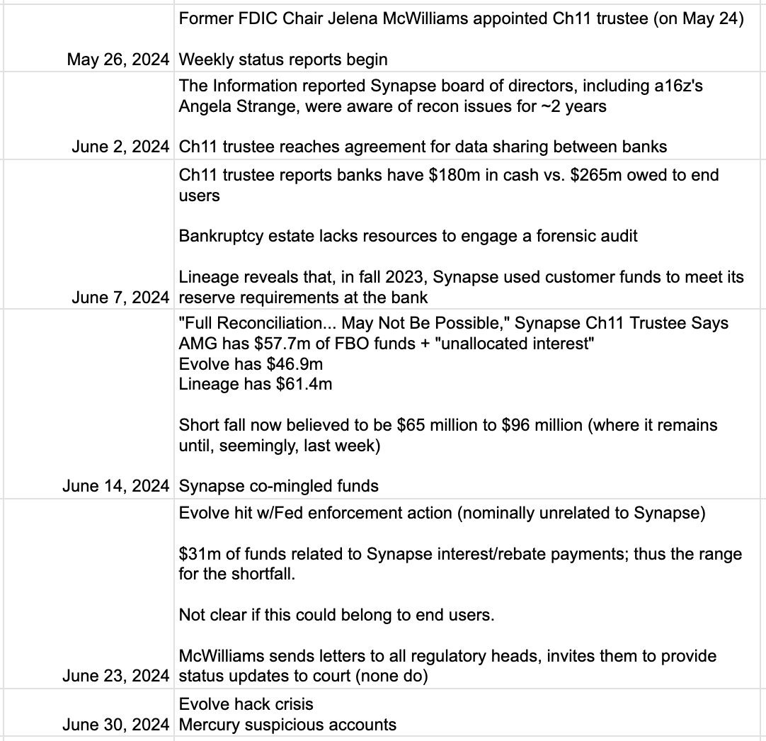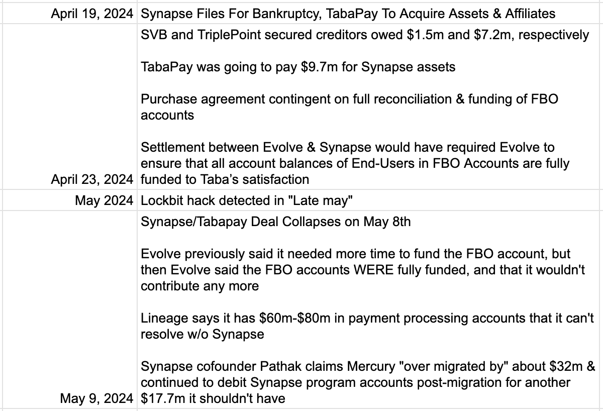 Still, there was hope of a soft landing of sorts: in March 2024, this newsletter reported that Synapse was working on a deal to sell itself to TabaPay, potentially through a bankruptcy process, writing at the time: